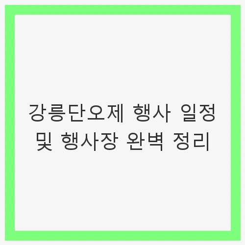 2025년 강릉단오제는 20주년을 맞이하여 더욱 풍성하고 다채로운 프로그램을 준비하고 있습니다. 이 글에서는 강릉단오제의 행사 일정과 주요 행사장 정보를 완벽하게 정리하여 여러분이 축제를 더욱 즐겁게 경험할 수 있도록 도와드리고자 합니다. 가족, 친구, 연인과 함께하는 특별한 시간을 만들어 보세요.