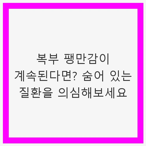 복부 팽만감은 과민성 대장 증후군, 만성 소화불량, 변비와 같은 특정 질환에서 발생할 수 있습니다. 이러한 질환들은 복부 팽만감 외에도 다양한 증상을 동반하며, 방치 시 더욱 심각한 문제로 발전할 수 있습니다. 따라서 지속적인 증상이 나타나는 경우에는 전문의의 상담과 검사가 필요합니다.