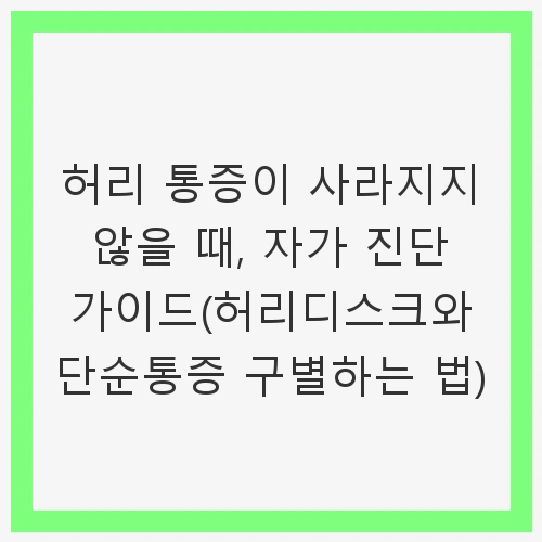 허리 통증은 현대인들이 자주 경험하는 증상 중 하나입니다. 특히 장시간 앉아 있는 직장인이나, 반복적인 허리 사용으로 인해 허리 통증을 느끼는 경우가 많습니다. 하지만 허리 통증이 발생했을 때, 그 원인이 단순한 근육의 긴장인지, 아니면 허리디스크와 같은 심각한 문제인지를 구분하기는 쉽지 않습니다. 오늘은 허리 통증의 원인을 이해하고, 자가 진단을 통해 허리디스크와 단순 통증을 구별하는 방법에 대해 알아보겠습니다. 이를 통해 당신의 허리 건강을 더 잘 지킬 수 있도록 돕겠습니다.