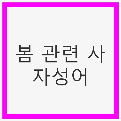 안녕하세요, 독자 여러분! 따스한 봄이 오고 있습니다. 봄은 새롭게 시작하는 계절로, 자연이 다시 살아나는 모습을 보여줍니다. 이 시기에는 생명의 소중함과 희망을 느끼게 해주는 다양한 표현들이 있습니다. 이번 포스팅에서는 봄과 관련된 사자성어를 통해 그 의미와 활용 방법을 알아보겠습니다. 봄이 주는 감정을 더욱 깊이 이해하고, 일상에서도 효과적으로 활용할 수 있는 표현들을 소개할게요.