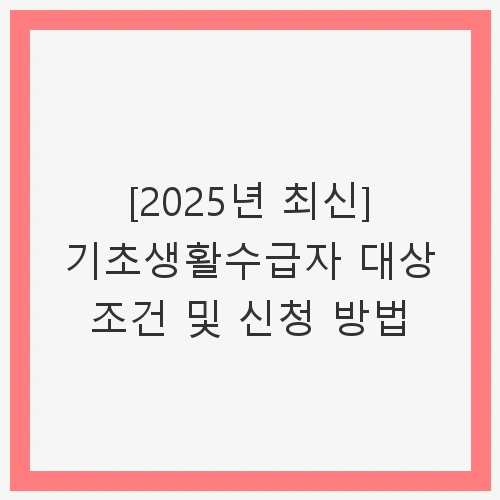 👉[2025년 최신] 기초생활수급자 대상 조건 및 신청 방법 바로보기기초생활수급자 제도란?
